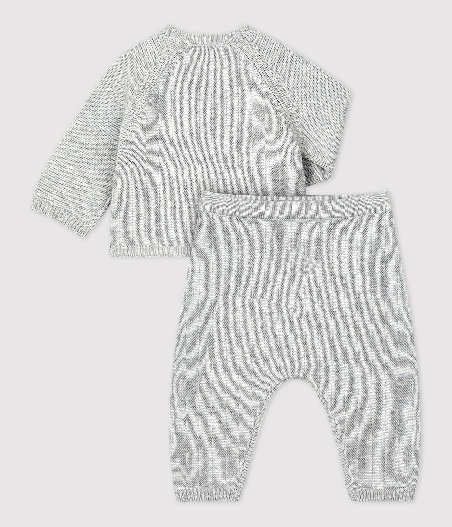 У комплекті теплий трикотажний кардиган з брюками. Кардиган має застібки на ґудзики. Еластичний пояс на брюках. Чудовий виріб подарунку для новонародженого. Органічна бавовна. Склад: 100% бавовна