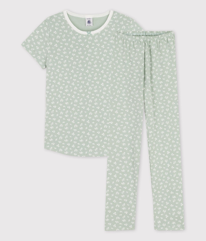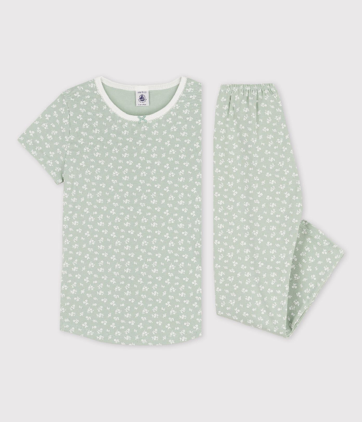 Пижама украшена цветочками. Сертифицированный материал OEKO-TEX STANDARD 100, CQ 746/4, IFTH. Состав: 100% хлопок