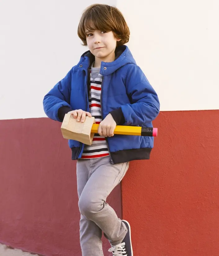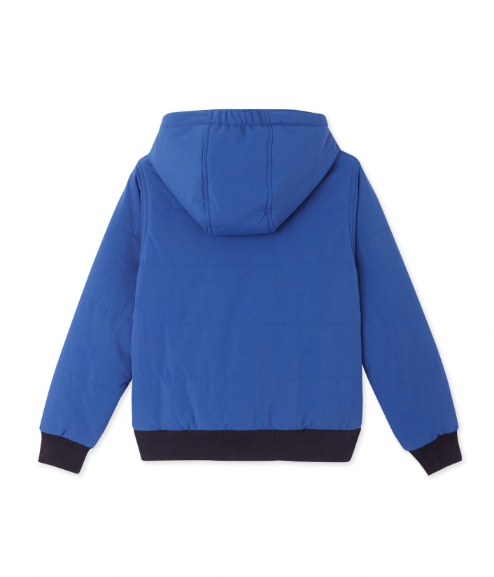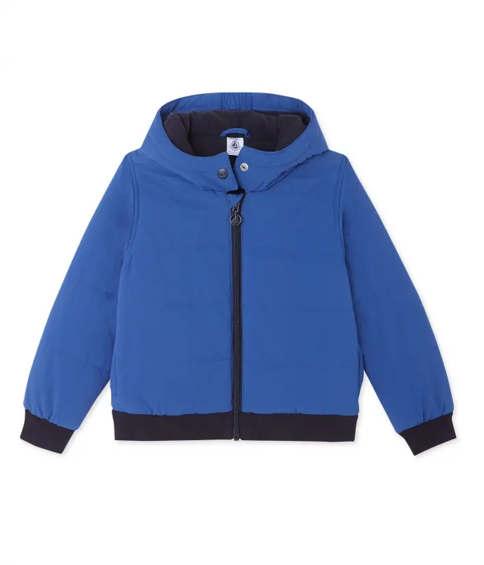 Куртка з капюшоном для хлопчика, виготовлена на флісовій підкладці. Зверніть увагу на деталі: еластичні манжети та пояс, дві кишені з боків, застібка-блискавка. Матеріал: 100% поліамід / 100% поліестер.