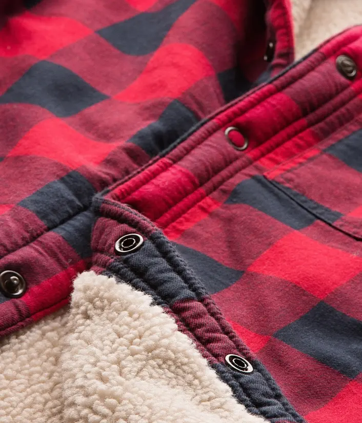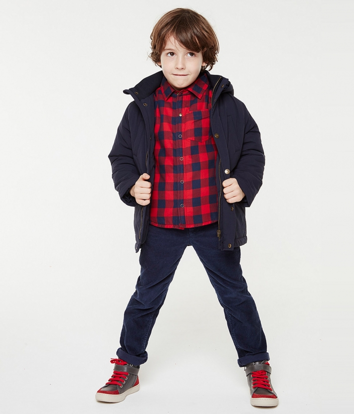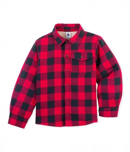 Куртка для хлопчика, виготовлена на підкладці із штучного хутра. Зовні куртка виглядає ніби сорочка у клітинку. Куртка оздоблена застібкою на кнопки. Матеріал: 100% бавовна; підкладка - 100% поліестер.