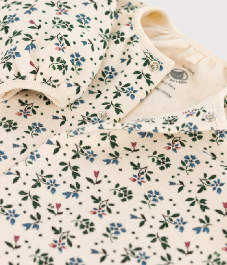 Піжама з відкритими ніжками прикрашена принтом квітів. Застібка на кнопочки спереду. Сертифікований матеріал OEKO-TEX® Standard 100, CQ 746/3, IFTH. Склад: 100% бавовна