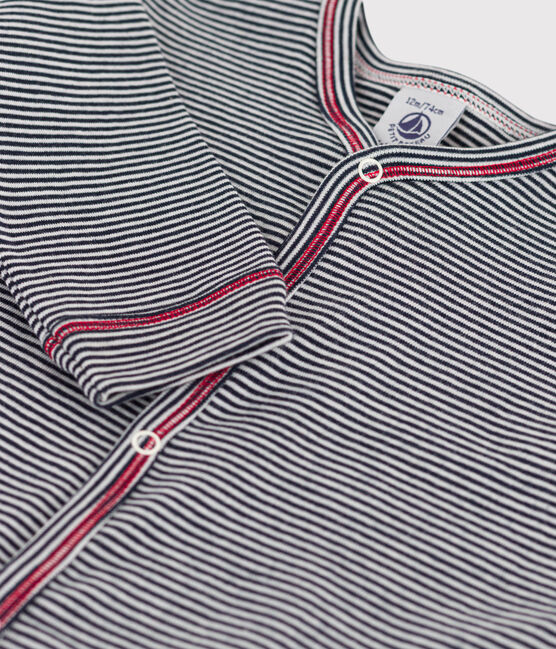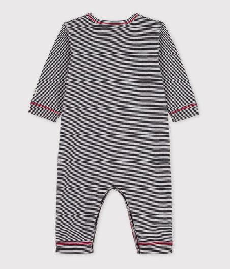 Пижама с открытыми ножками украшена принтом полосочек. Застёжка на кнопочки. Сертифицированный материал OEKO-TEX Standard 100, CQ 746/3, IFTH. Состав: 100% хлопок