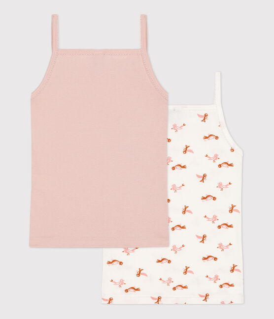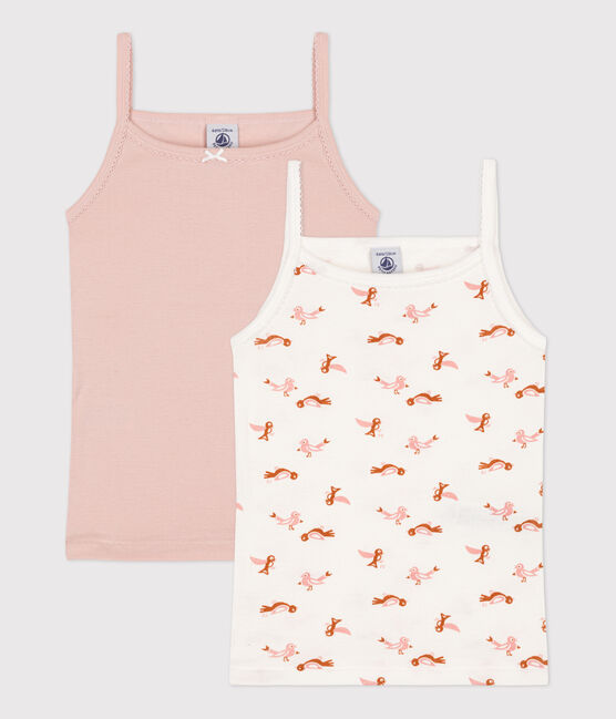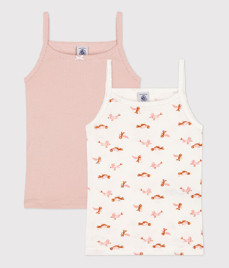 У комплекті дві майки на бретелях для дівчинки. Органічна бавовняна тканина Petit Bateau відмічена етикеткою OEKO-TEX®. Склад: 100% бавовна