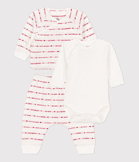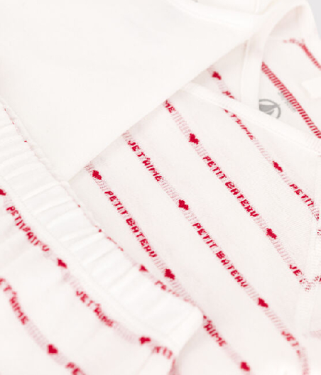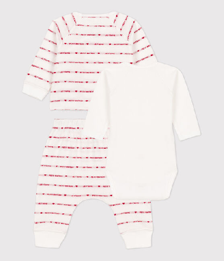 Кардиган з принтом сердечок. Боді з застібкою на кнопочки. Брюки мають еластичний пояс, тому дитині буде в них комфортно. Органічна бавовняна тканина Petit Bateau відмічена етикеткою OEKO-TEX®. Склад: 100% бавовна