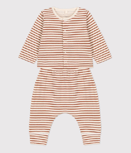 Кардиган та брюки прикрашені смужкою. Брюки мають еластичний пояс, тому дитині буде в них комфортно. Органічна бавовняна тканина Petit Bateau відмічена етикеткою OEKO-TEX®. Склад: 100% бавовна