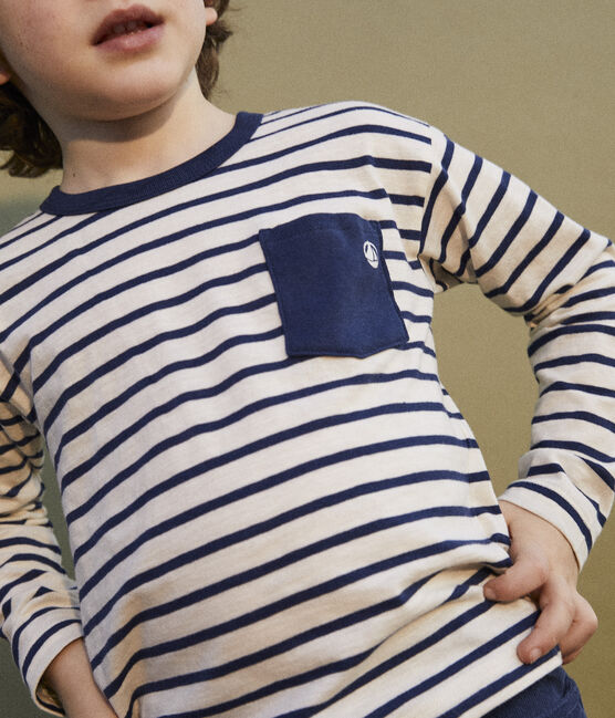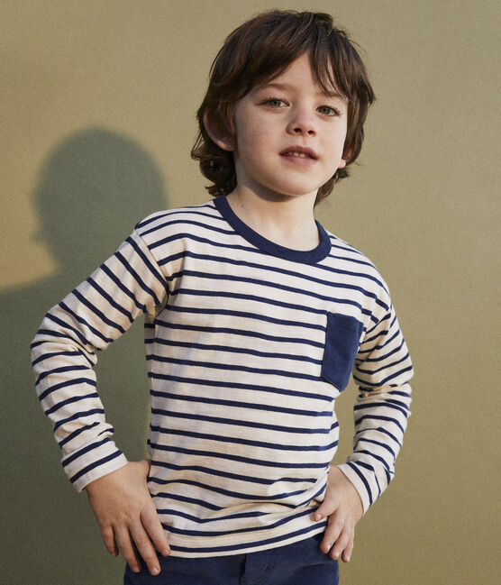 Футболка з довгими рукавами прикрашена бретонською смужкою. Склад: 100% бавовна