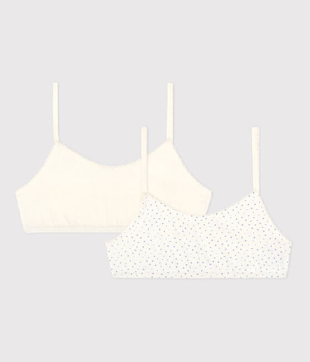 Набір з двома бралеттами для дівчинки. Трикотажний бюстгальтер без кісточок на бретелях надзвичайно зручний. Сертифікат OEKO-TEX® STANDARD 100, CQ 746/4, IFTH. Склад: 92% бавовна, 8% еластан