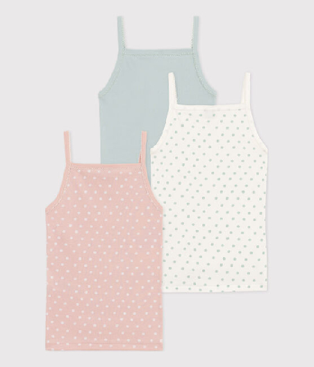 У комплекті три майки на бретелях для дівчинки. Відомо, що майка - це основа гардеробу, тому вона завжди потрібна. Бавовняна тканина Petit Bateau відмічена етикеткою OEKO-TEX®. Склад: 100% бавовна