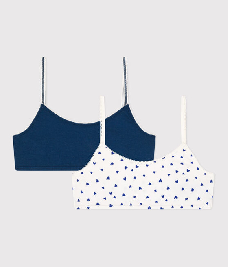 Набір з двома бралеттами для дівчинки. Трикотажний бюстгальтер без кісточок на бретелях надзвичайно зручний. Сертифікат OEKO-TEX® STANDARD 100, CQ 746/3, IFTH. Органічна бавовна. Склад: 92% бавовна, 8% еластан