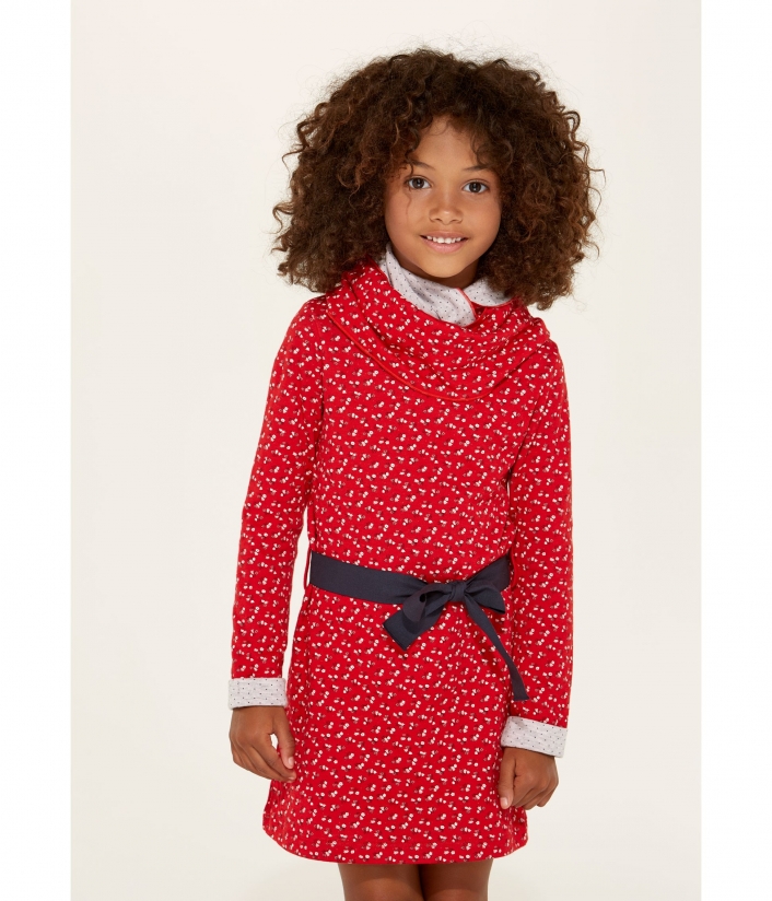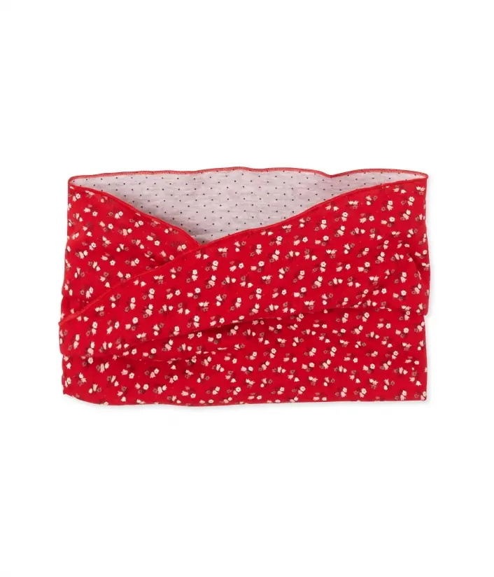 Двусторонний воротник для девочки, изготовленный из двуслойной ткани, с цветочным узором снаружи и принтом в мелкий горошек изнутри. Очень красивый аксессуар к платью из этой же коллекции Petit Bateau. Материал: 100% хлопок.