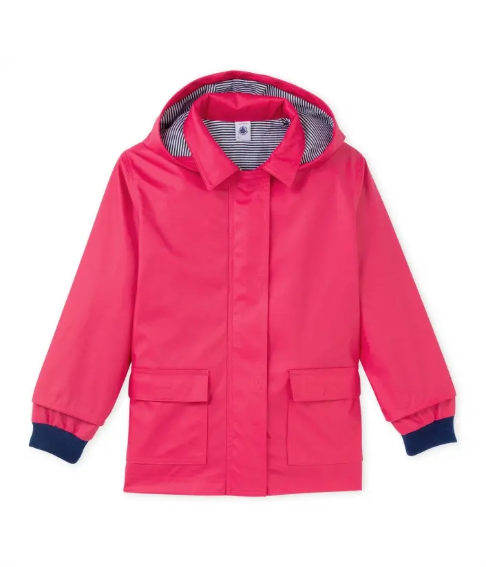 Водонепроникний плащ-дощовик від Petit Bateau для дівчинки. Підкладка виготовлена з м'якої смугастої тканини. Рукав оздоблений манжетом-резинкою. Цей плащ-дощовик стане незамінною річчю для середини сезону. Матеріал: 100% поліестер / 100% бавовна