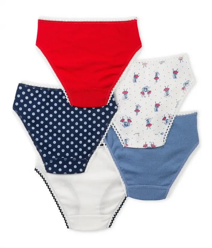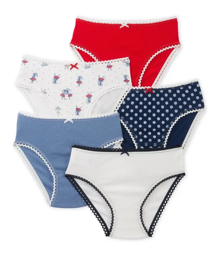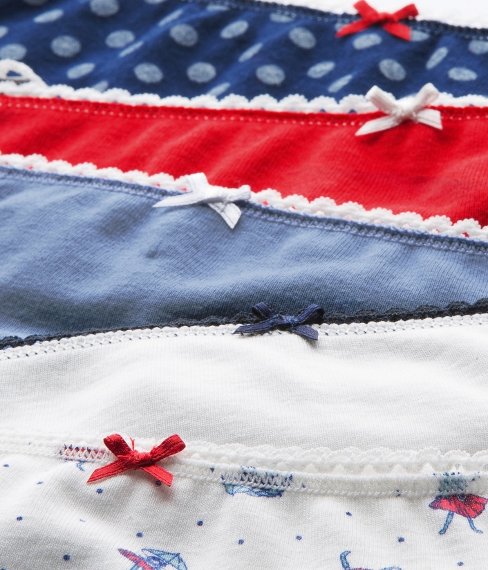 Набір з п'яти трусиків для дівчинки, прикрашених елегантним бантиком. Матеріал: 100% бавовна.