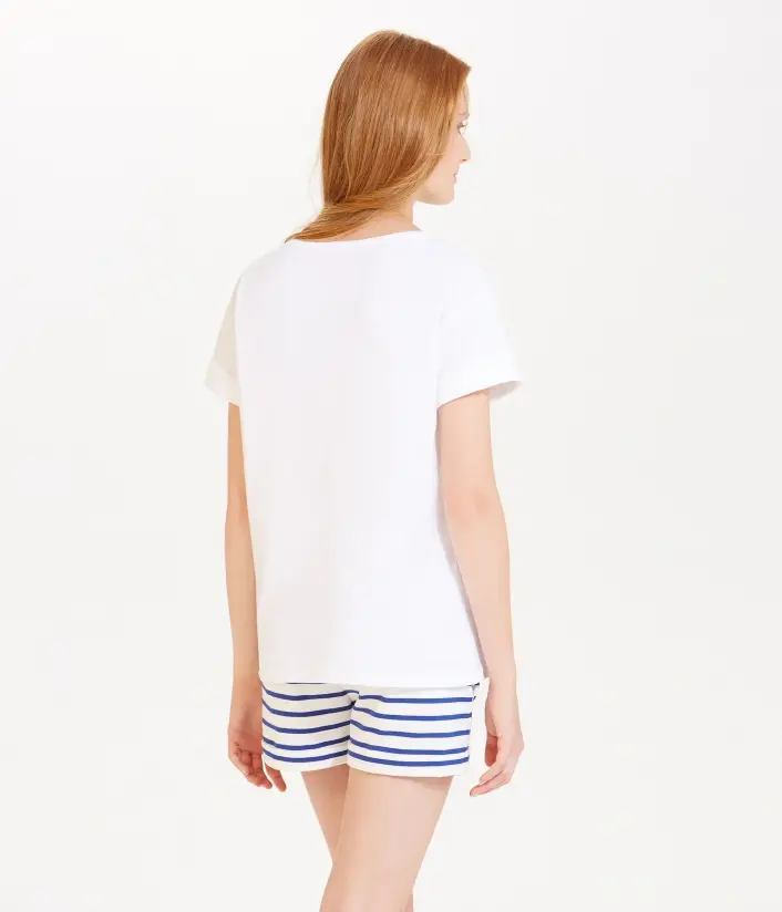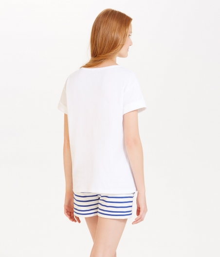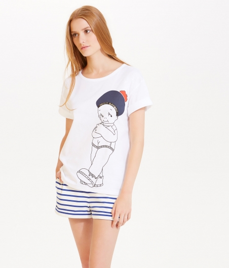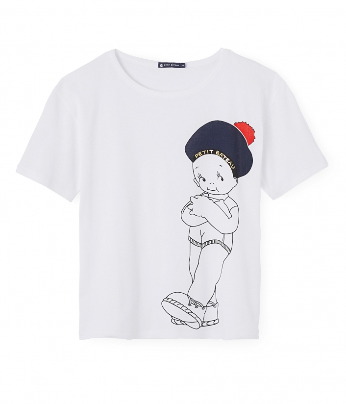 Жіноча футболка свободного крою у стилі "бойфренд". Футболка прикрашена зображенням дівчинки Марінетт - талісману компанії Petit Bateau. Матеріал: 100% бавовна.