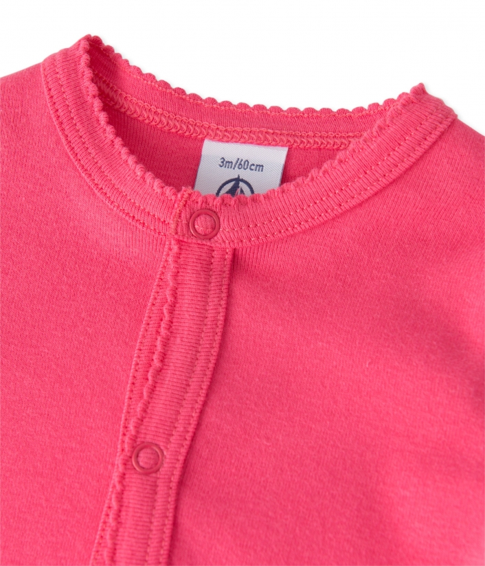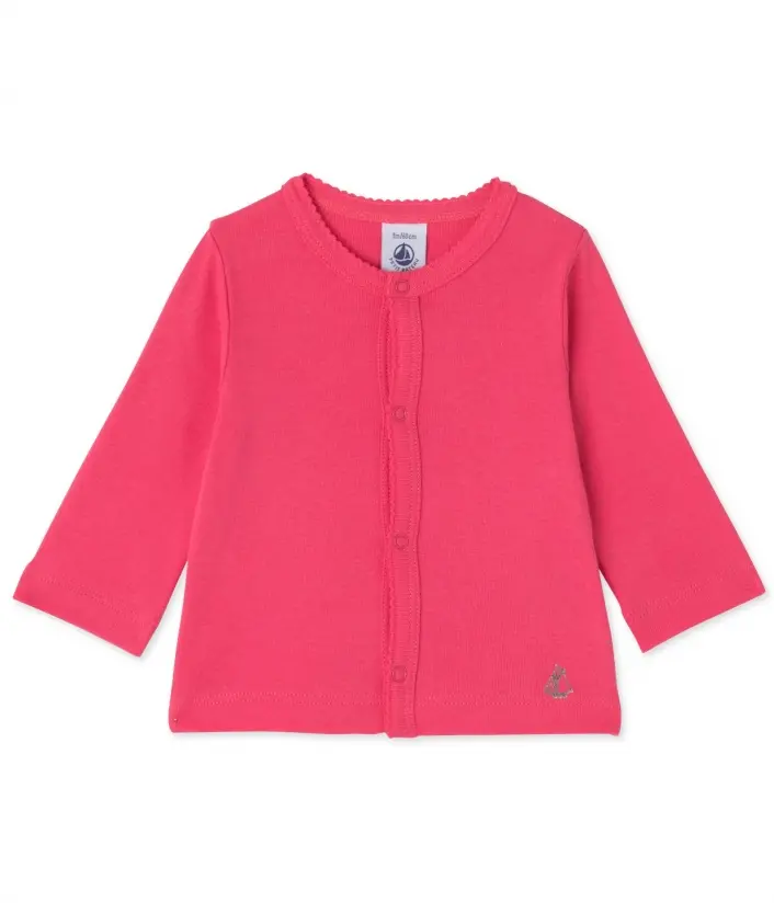 Летний кардиган с круглым вырезом и застежкой на кнопки для девочки. Изготовлен из мягкой хлопковой однотонной ткани. Изящная декоративная отделка в стиле "кокот" на вырезе и планке с застежкой придают особой нежности этому детскому кардигану. Состав: 100% хлопок.