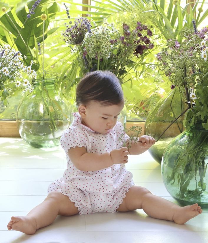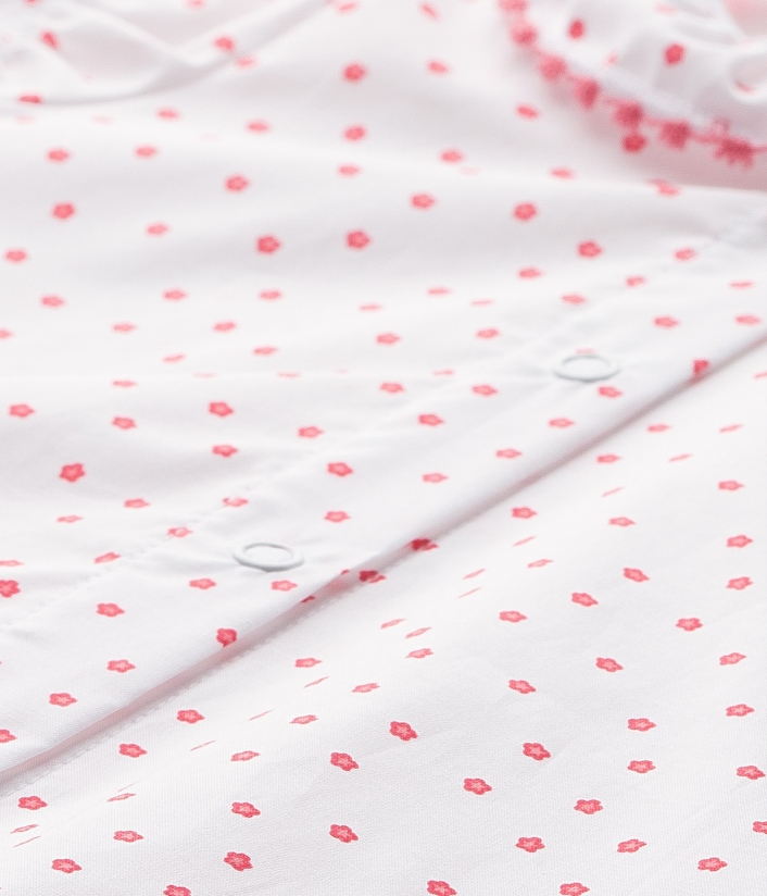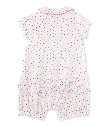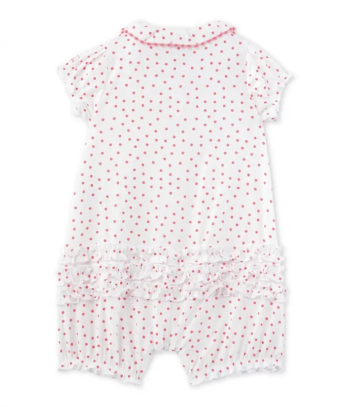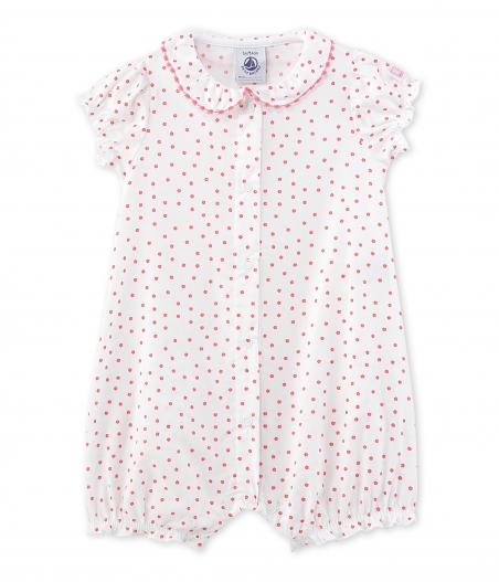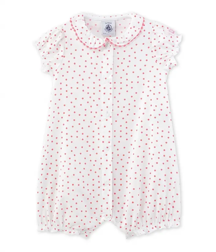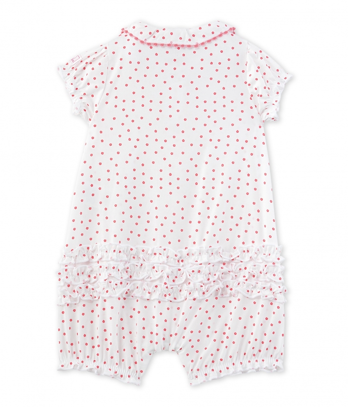 Неймовірно гарний комбінезон з короткими рукавами для дівчинки, виготовлений з попліну з квітковим принтом. Комбінезон оздоблений комірцем та має еластичні манжети на рукавах. Зручні застібки між ніжками зроблять переодягання Вашої малечі набагато простішим. Цей комбінезон ідеально підійде для літнього сезону! Склад: 100% бавовна.