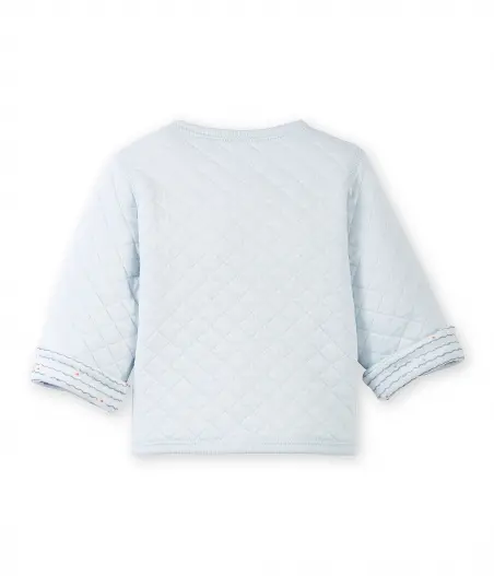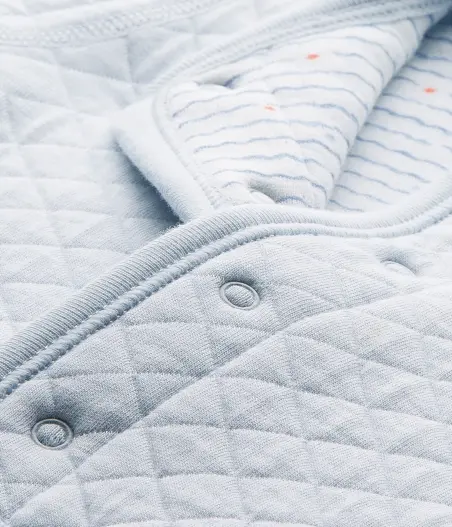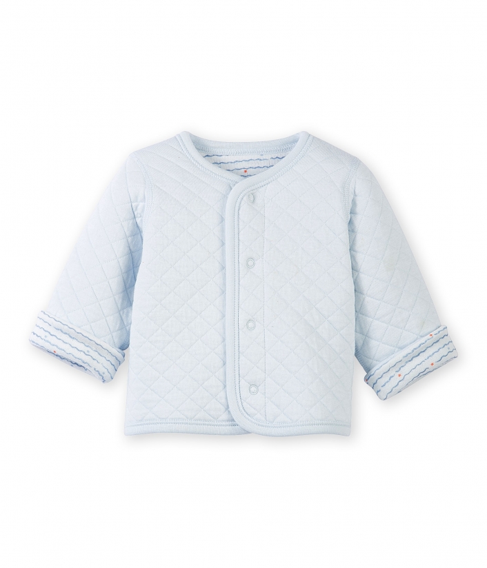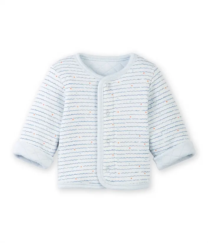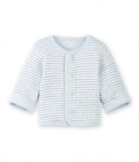 Двосторонній кардиган для хлопчика, виготовлений зі стьобаної тканини з однієї сторони та гладкої бавовни зі смугастим принтом - з іншої. Дуже приємний та універсальний кардиган на кожен день. Матеріал: 73% бавовна, 27% поліестер / 100% бавовна.