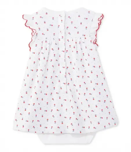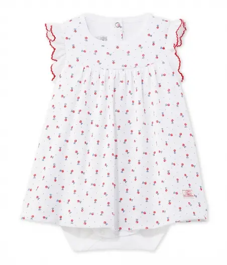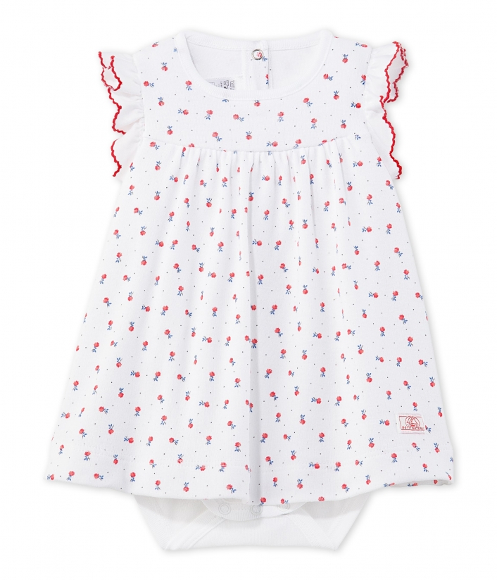Сукня-боді з квітковим візерунком для маленької дівчинки. Сукня оздоблена витонченими рукавами-метеликами. Для комфортного та зручного перевдягання боді оздоблене застібками на спинці та між ніжками. Гарна літня сукня від Petit Bateau! Склад: 100% бавовна.